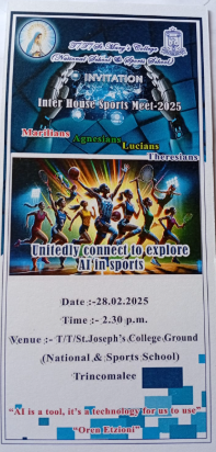 The T/T/St. Joseph’s College Sports Meet 2025 was held on April 28, 2025, at 2:30 PM at the T/T/St. Joseph’s College Ground (National & Sports School), Trincomalee.